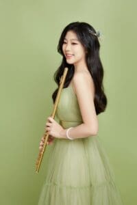 Yue Guanghui began studying the piano at the age of four and started learning the flute at the age of ten. She is currently a sophomore in the flute program at the Shanghai Conservatory of Music Affiliated High School, studying under Professor Park Mi-Hyang from the Shanghai Conservatory of Music. In 2019, she traveled to France to participate in masterclasses, receiving instruction from renowned musicians such as Vincent Lucas, Michel Moragues, and Japanese flute master Kazunori Seo. In 2021 alone, she achieved remarkable success in international competitions, winning: First Prize at the Swiss International Music Youth Competition, Second Prize at the Hungarian International Music Competition, First Prize in at the French Young Performers